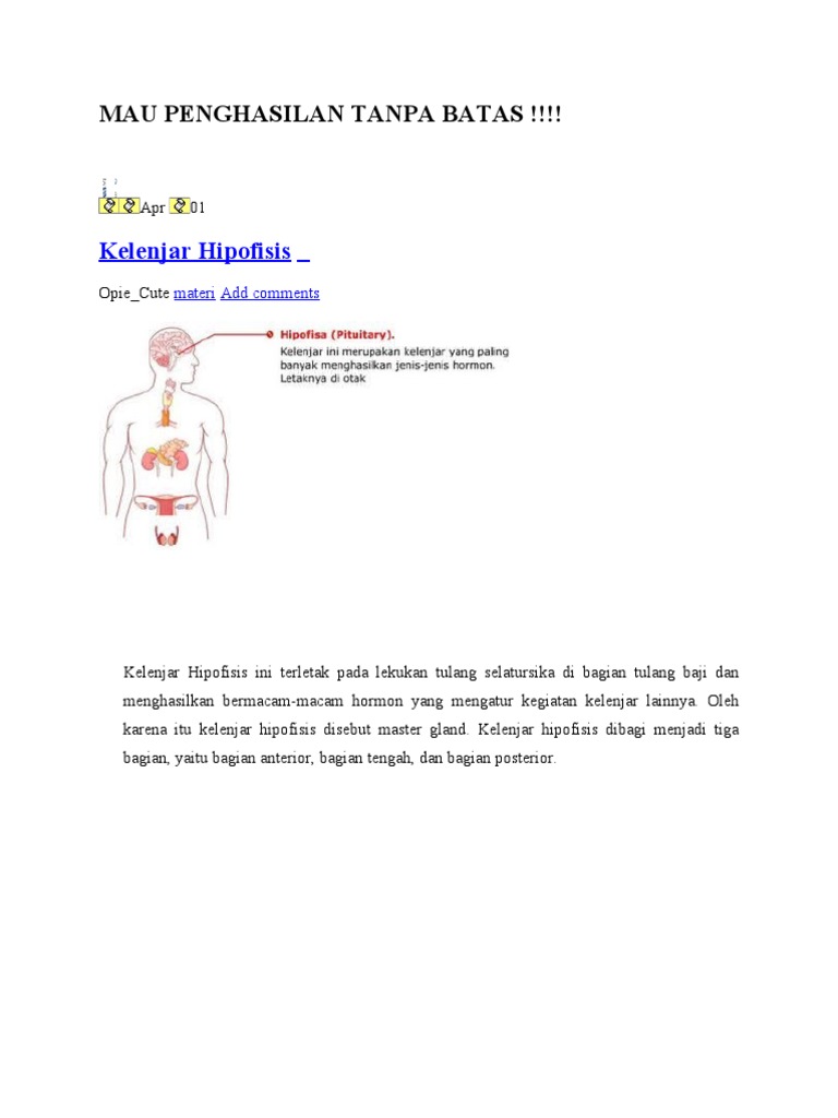 Karena itu, kelenjar hipofisis disebut juga master of gland.